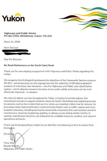 Minister says road not maintained and puts it in writing and refuses to respond,want to charge me $25,000 to open the road one time. this was cheaper and will definitely help me with my wood. when you F.A.F.O. NOW MINISTER LINDA BENOIT CAN LISTEN TO OTHERS COMPLAIN ABOUT THE ROAD.
