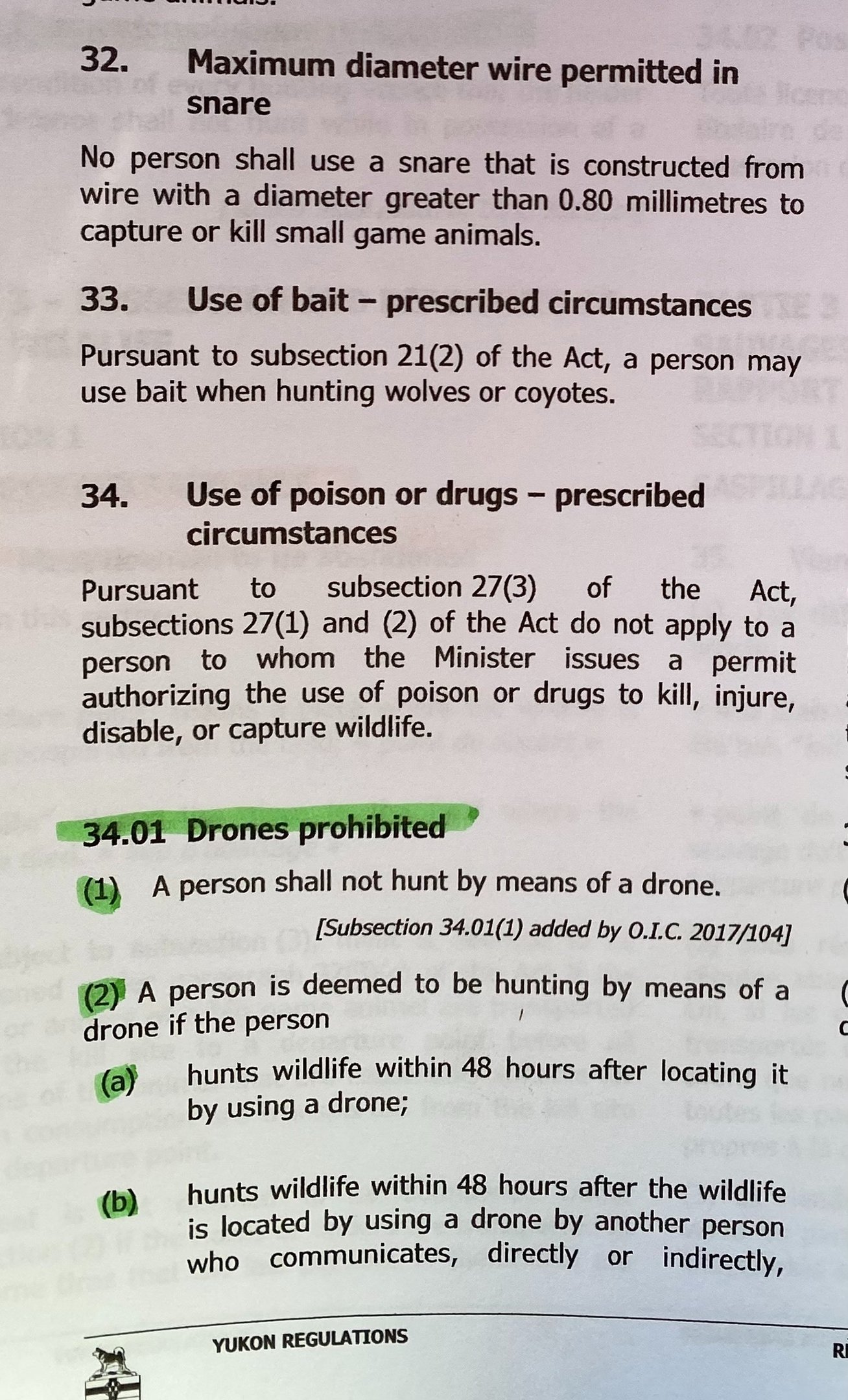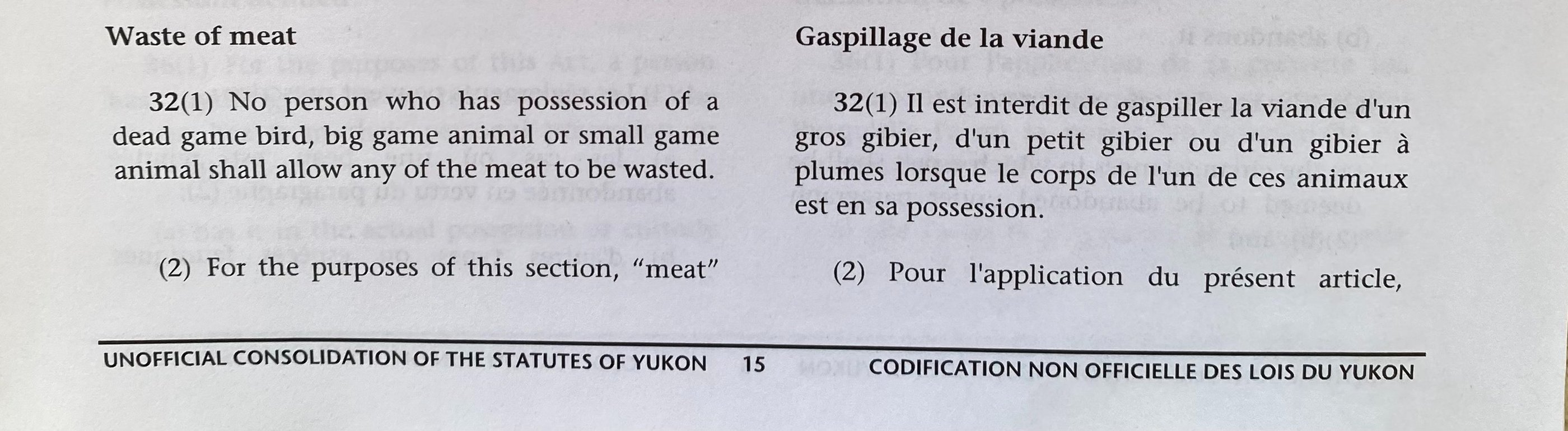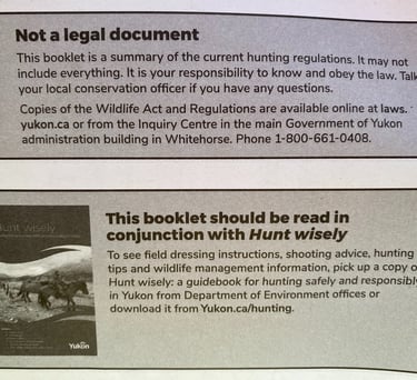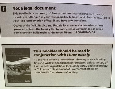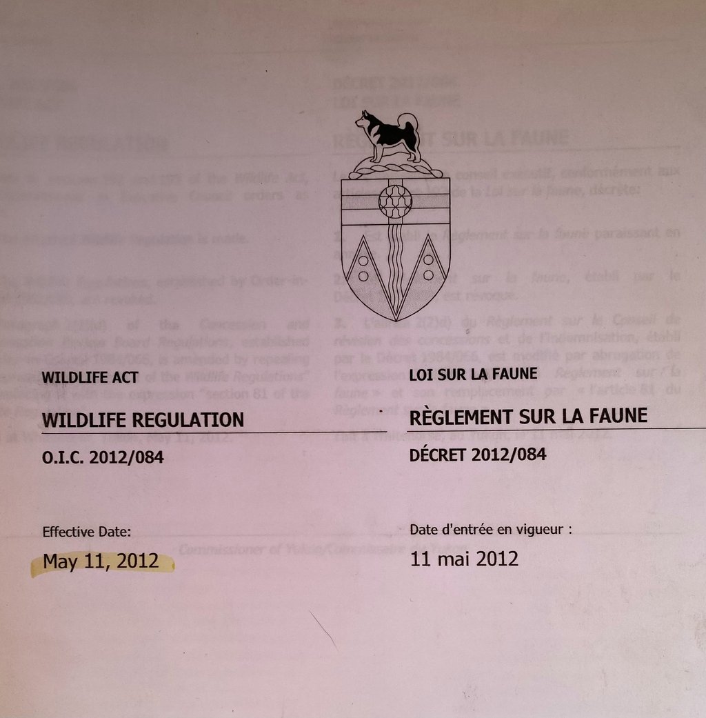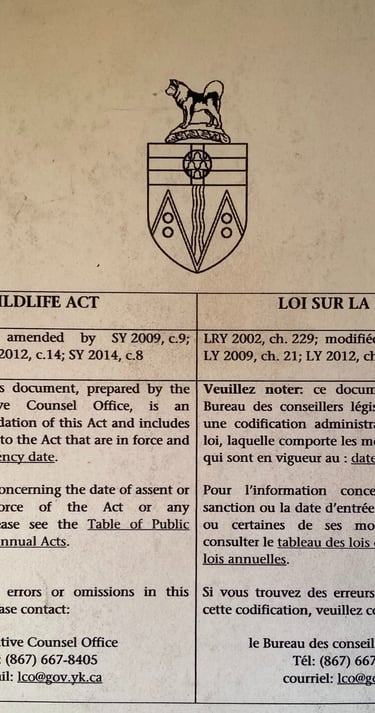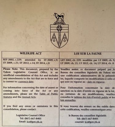 Please see below an example of the Two deferent Yukon Territory Wildlife Acts.